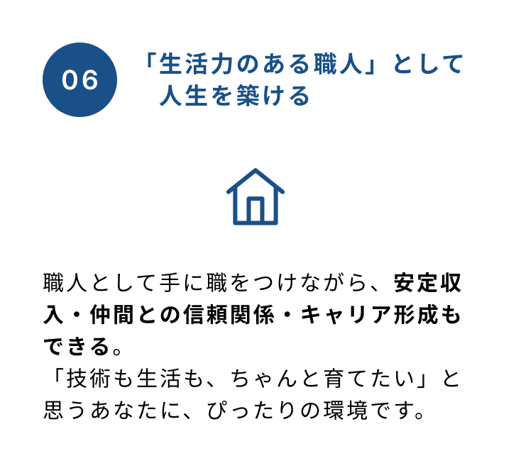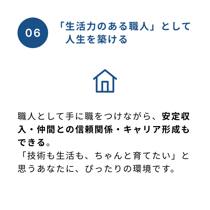 あなたの技術と誠実さが、必ず必要とされる場所があります。私たちの仕事は、AIやロボットでは代わりになりません。人が生きる限り、現場には人の手でしかできない仕事があります。