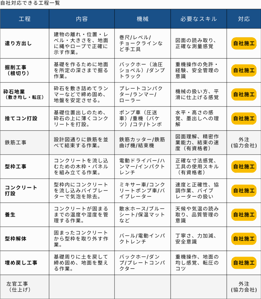 型枠だけ、掘削だけ、という分業型ではないからこそ、