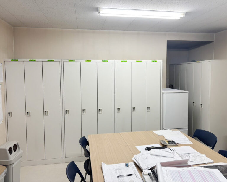 休憩室はきれいでちゃんと整理されてるし、ひとりずつロッカーも与えられてます。もちろんトイレも建物の中できれいです。冬でも安心して使えます。こういう環境がちゃんとしてると、仕事も気持ちよくできますよね。